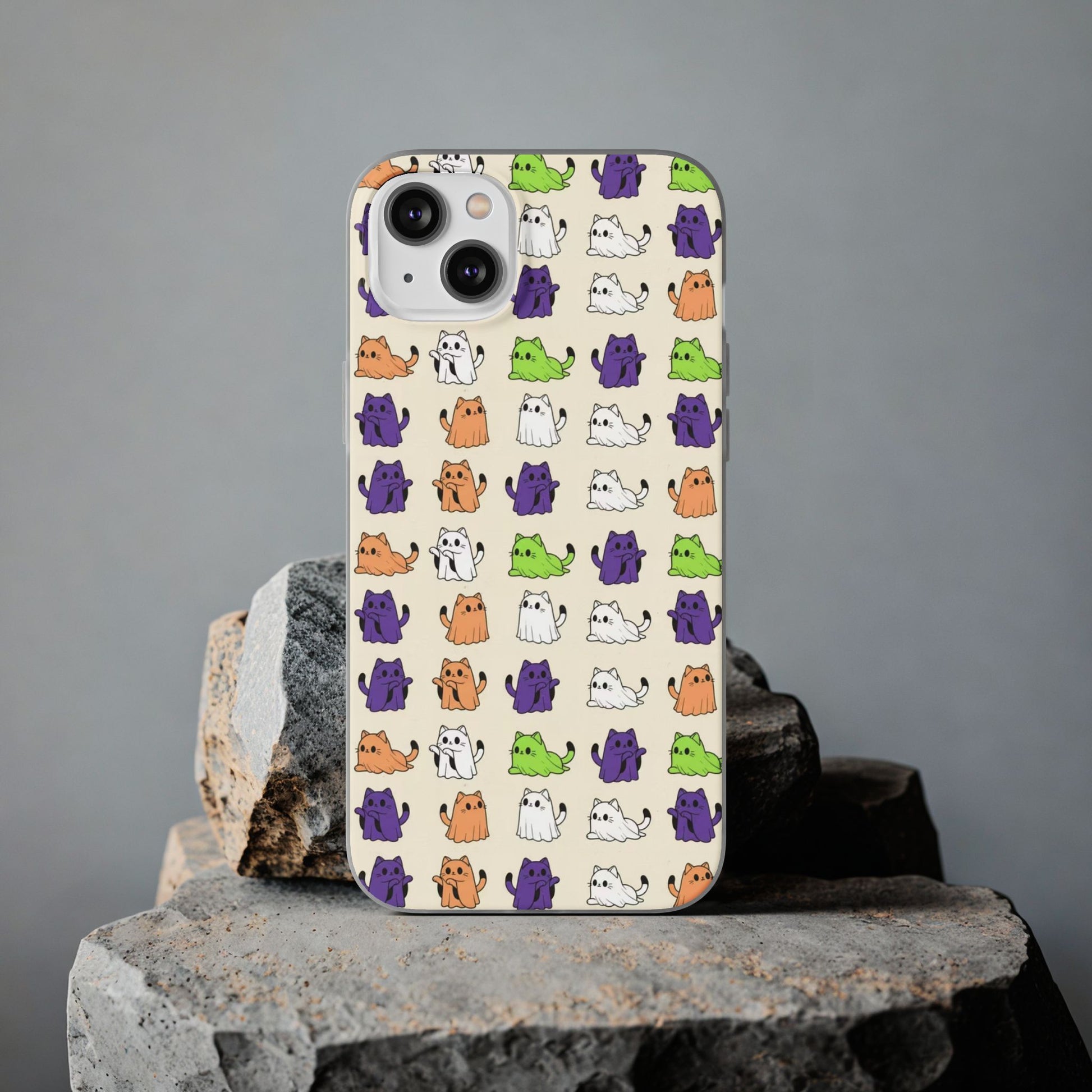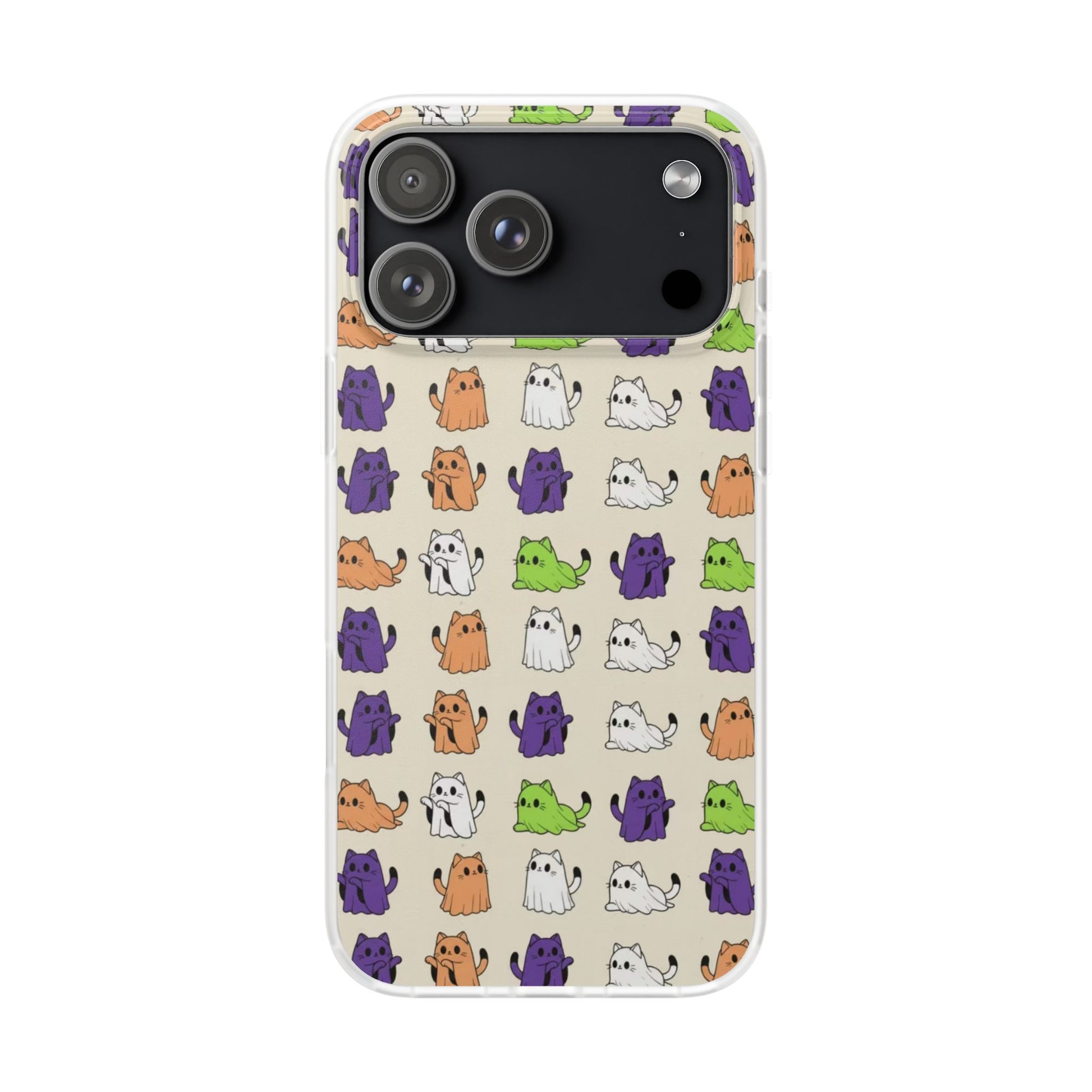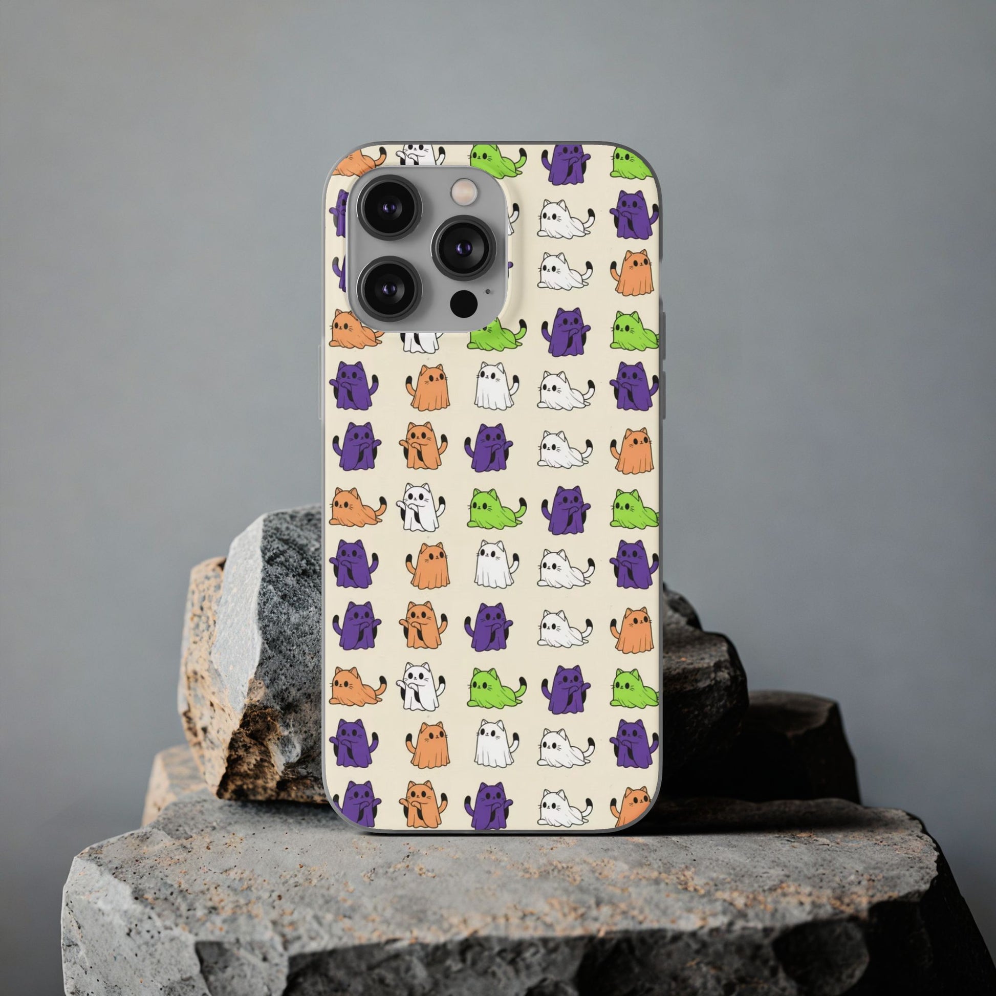Celebrate Halloween with this Halloween Cat Ghost Pattern Phone Case! Featuring playful cats dressed as colorful ghosts in shades of green, purple, orange, and white, this whimsical design adds a fun, festive touch to your phone. Perfect for cat lovers and Halloween enthusiasts alike! 🐱👻