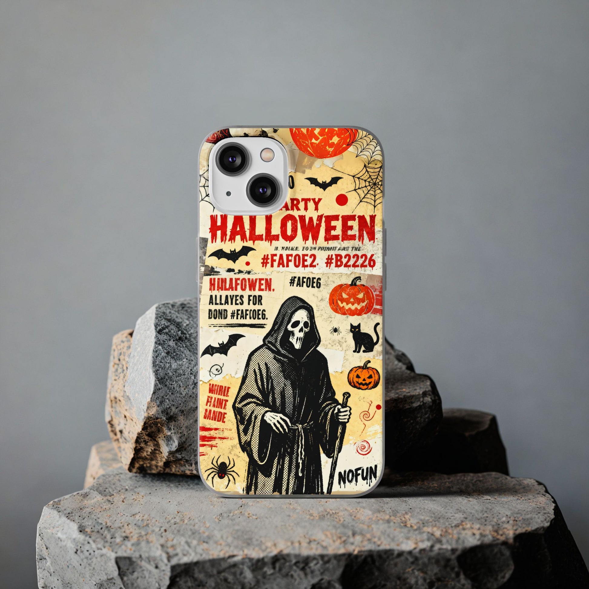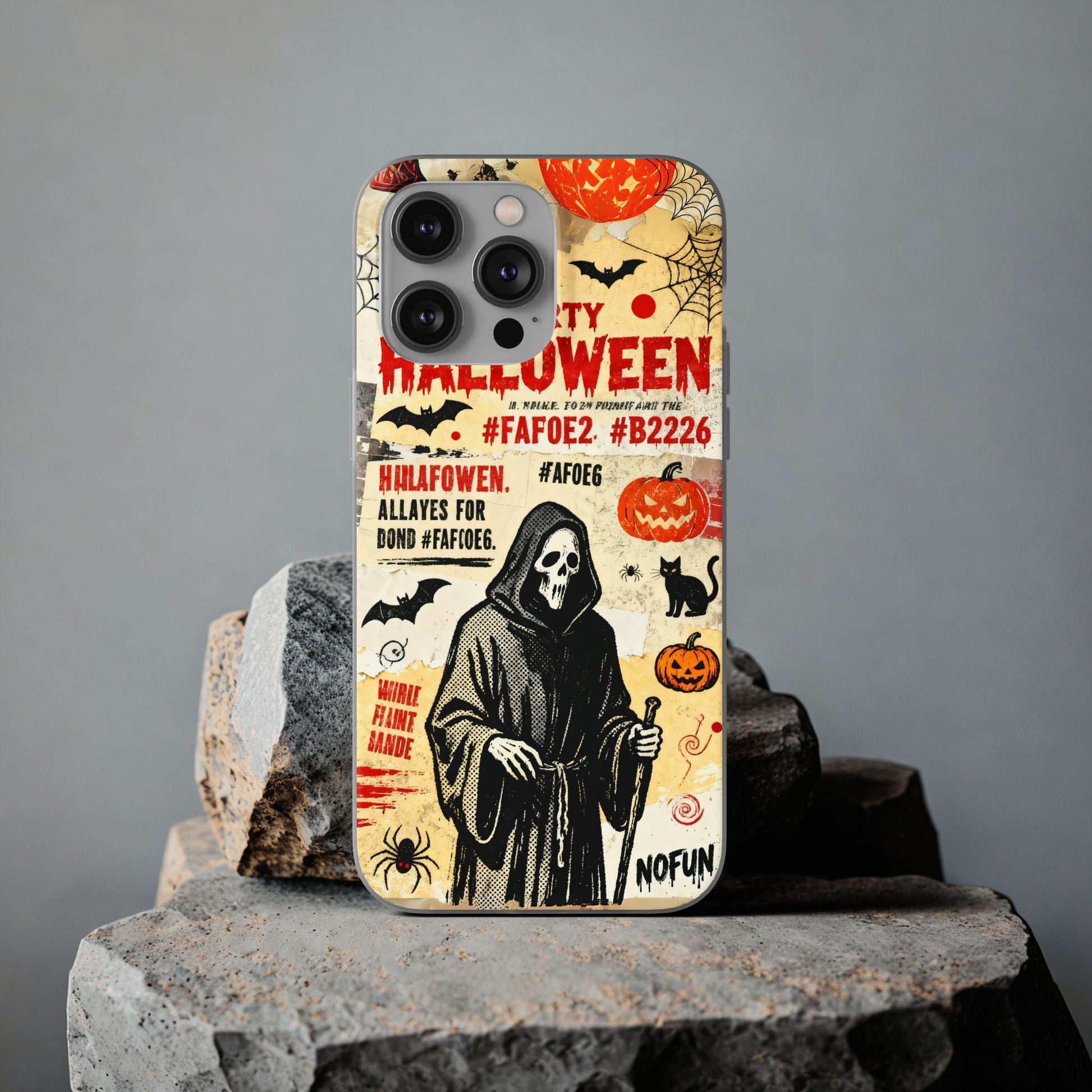 Get ready for a spooky Halloween celebration with this Spooky Halloween Party Phone Case! Featuring a creepy grim reaper, glowing pumpkins, bats, spider webs, and bold Halloween typography, this design sets the perfect eerie mood for the season. The distressed vintage look adds to the spooky charm, making this case ideal for those who want to add a dark and festive touch to their phone! 🎃🕸️