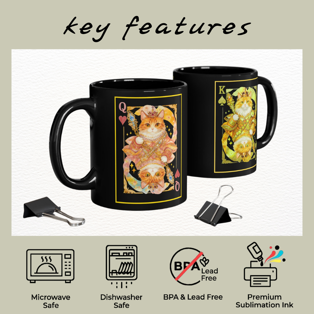 - 🐱 Royal Cat Design: Adorable cats dressed as a queen and king, wearing crowns and luxurious robes, inspired by a card game theme.