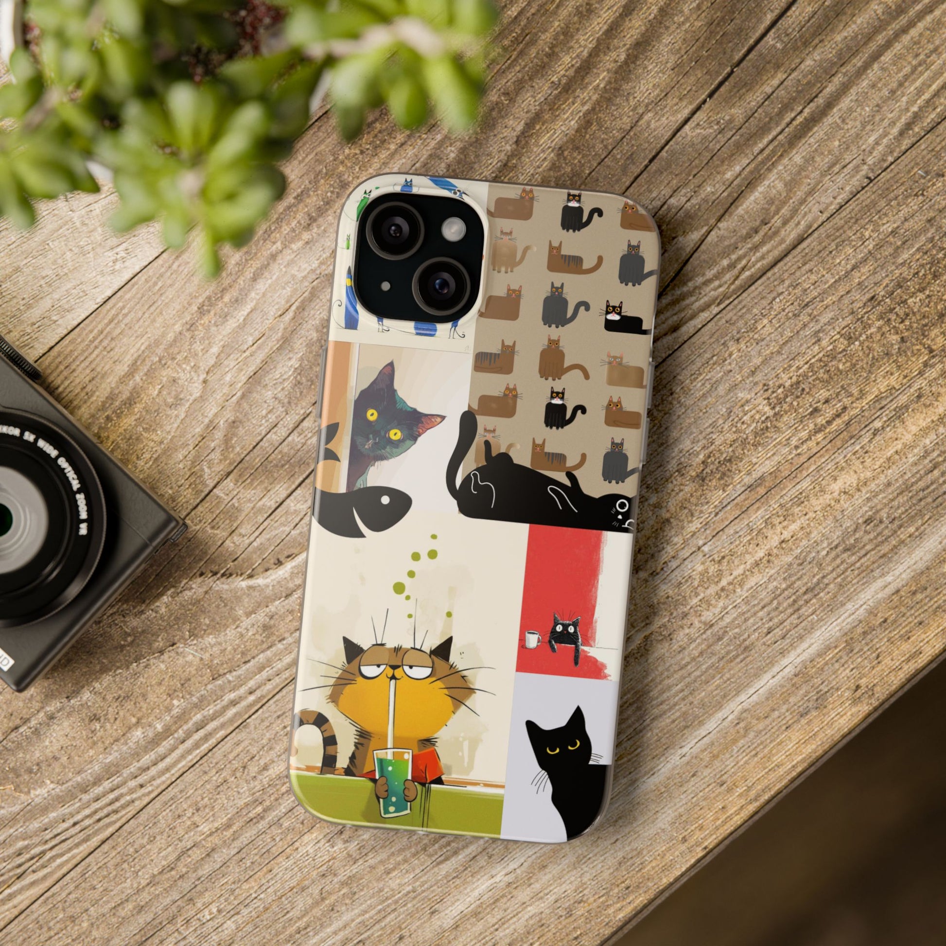 Add some feline fun to your phone with this Playful Cat Art Collage Phone Case! Featuring a colorful mix of quirky and adorable cat illustrations, this case showcases different cat designs, from curious kitties with big eyes to lazy cats lounging with a drink. The lively artwork captures the playful nature of cats in a vibrant, eye-catching way, making it the perfect accessory for any cat lover! 🐾